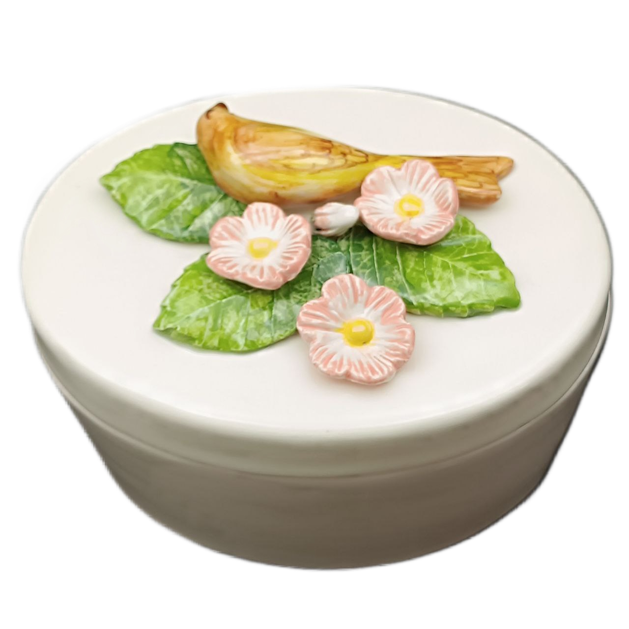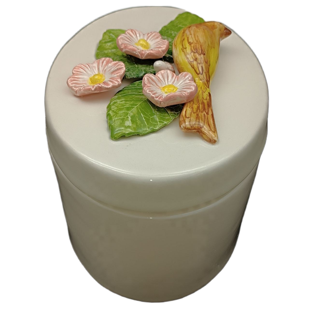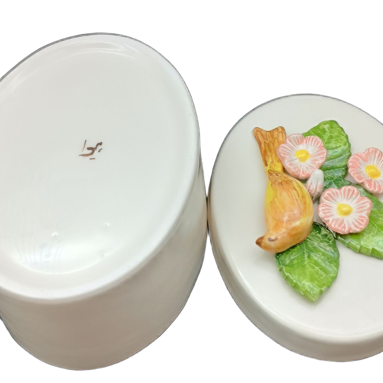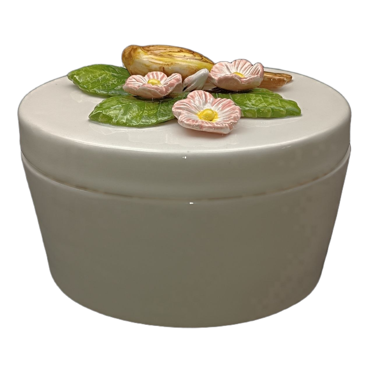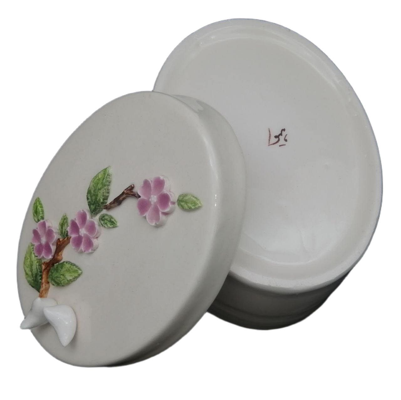 شکلات خوری دربدار ندا هیوا از اثار دستساز هیوا سرامیک ( سفال هیوا ) میباشد که با گل سرامیک ساخته و نقش روی آن برگرفته از طرح گل و مرغ سنتی پیچک معروف ایرانی و طرح برجسته و زیبا از طبیعت سبز میباشد.